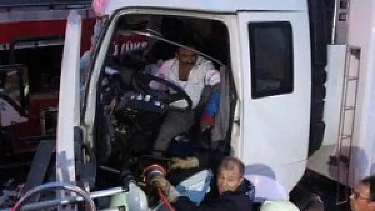 Tekirdağ'da meydana gelen kazada, kamyon içerisinde sıkışan sürücü, bir buçuk saatlik çalışma sonucu sıkıştığı yerden kurtarıldı.