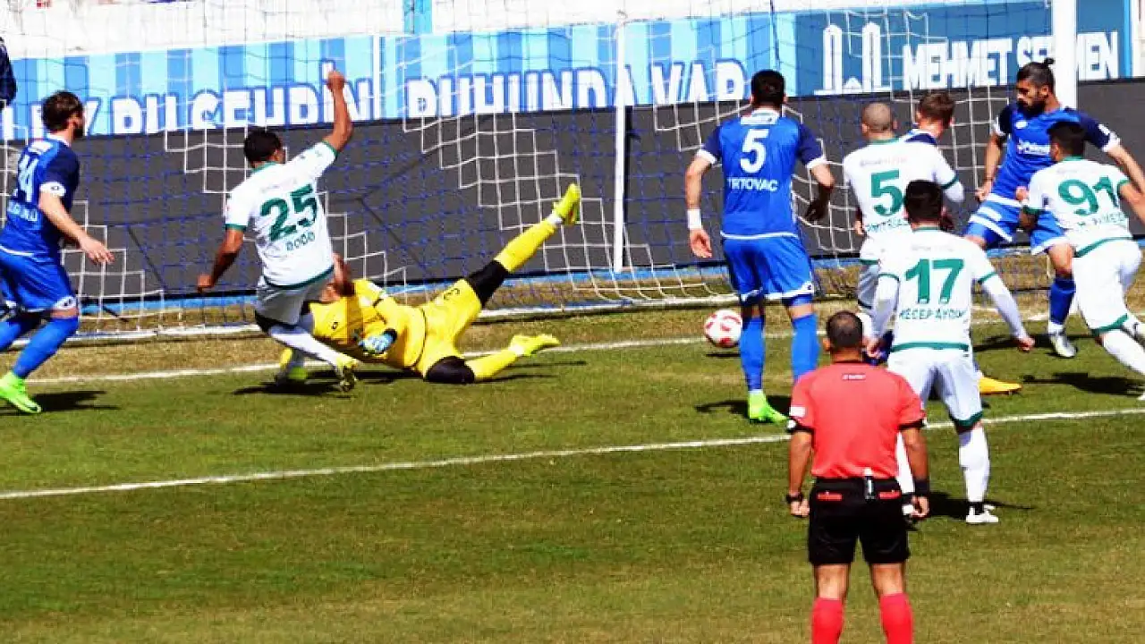 59’ncu dakikada sol kanattan gelişen ev sahibin ekibin atağında Gökhan’ın pasına yükselen Burhan’ın kafa şutu direkten döndü. Erhan dönen topu kafayla ağlarla buluşturdu: 3-3.