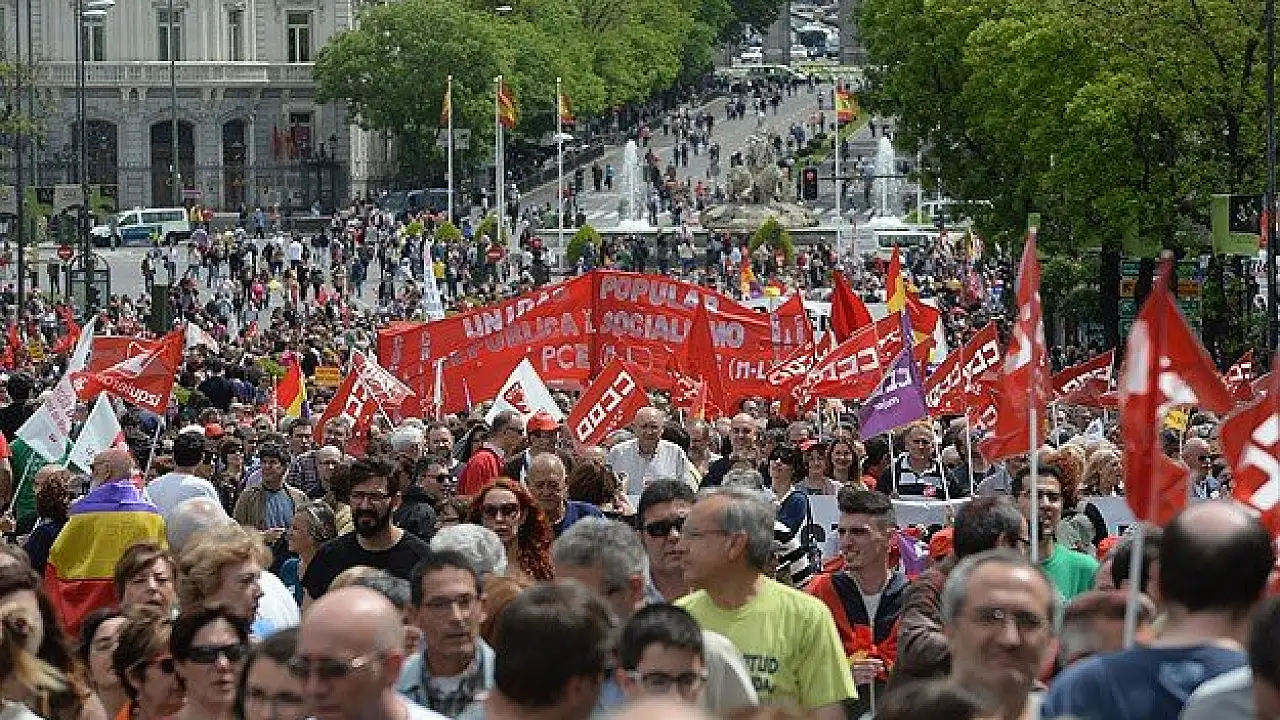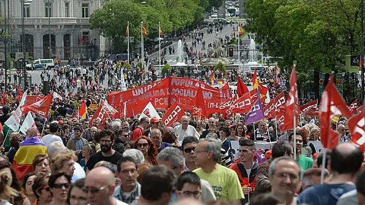 İşçi sendikaları İspanya'da 80 kentte gösteri düzenlerken, ülkenin iki büyük işçi sendikası CCOO ve UGT en büyük gösteriyi her yıl olduğu gibi yine başkent Madrid'de yaptı. Ana muhalefetteki Sosyalist İşçi Partisi ve komünist görüşlü Birleşik Sol (IU) partilerinin de destek verdiği gösteride, hükümetin ekonomik krizden dolayı son yıllarda özellikle sağlık ve eğitim alanlarında yaptığı kesintiler eleştirildi. "Güçlü Demokrasi", "Grev hakkı", "Kaliteli yaşam hakkı", "Kesintilere son" yazılı pankartların taşındığı gösteri olaysız geçti.