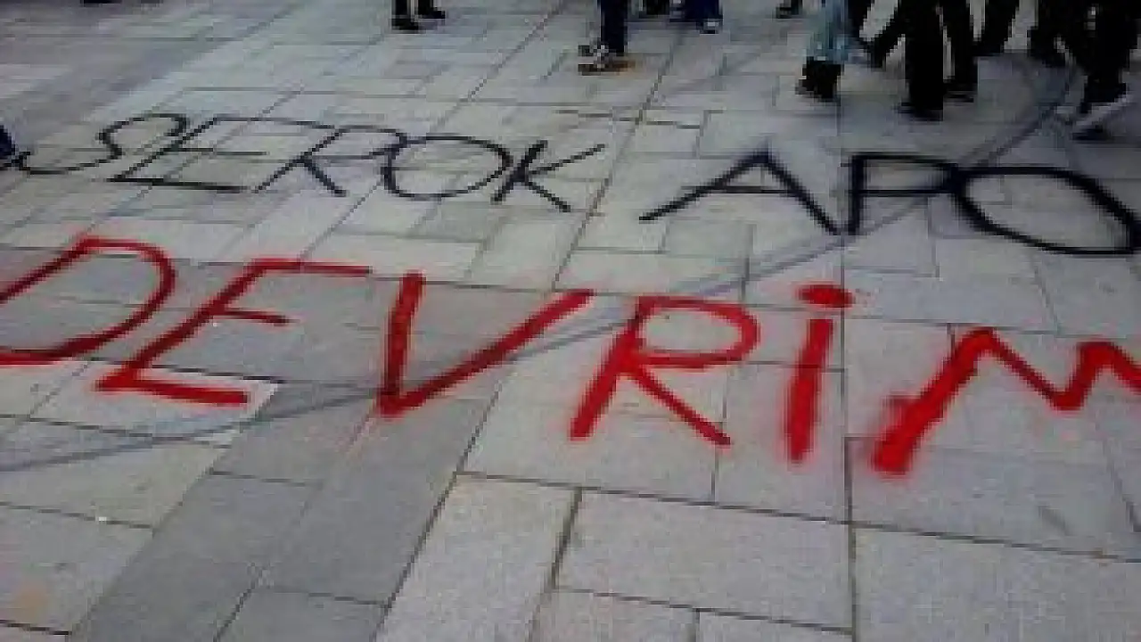 1 Mayıs İşçi Bayramı’nı bir grup alana getirdikleri sprey boyalarla Kent Meydanı’n daki kaldırımlara zarar vererek sözde kutladı