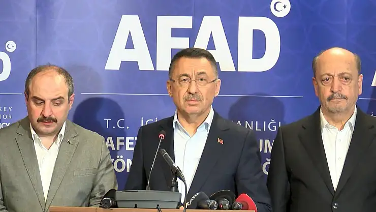 Cumhurbaşkanı Yardımcısı Oktay, Kahramanmaraş'ta meydana gelen ve 10 ili etkileyen 7.7 ve 7.6 büyüklüğündeki depremlerin ardından Afet ve Acil Durum Yönetimi Başkanlığı'nda (AFAD), gece yarısı basın toplantısı düzenledi.