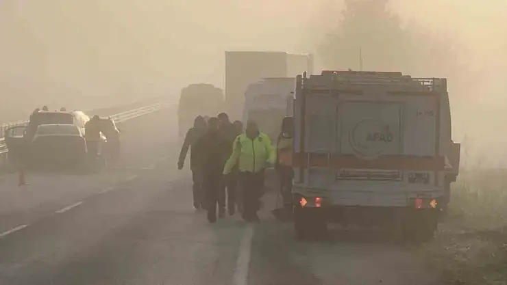 Edirne'de yoğun sis nedeniyle 10 aracın karıştığı zincirleme kazada 5 kişi yaralandı.