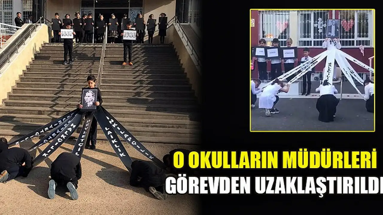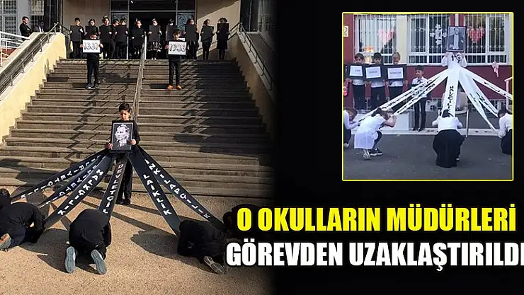 MİLLİ Eğitim Bakanlığı, 10 Kasım Atatürk'ü Anma Programı kapsamında kamuoyunda olumsuz algıya neden olacak nitelikte etkinliklere yer verildiği tespit edilen okul müdürlerinin görevden uzaklaştırıldığını duyurdu.