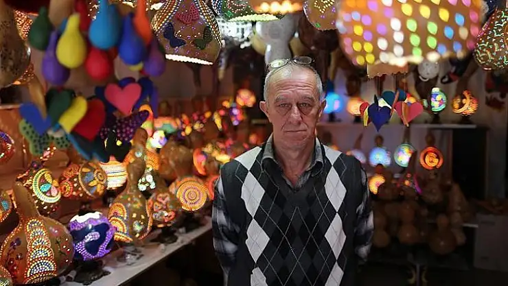 Su kabağından süs eşyaları üreten 63 yaşındaki Cenap Önen, 10 yıldır sürdürdüğü yeni mesleğinde avize, gece lambası ve abajur gibi hediyelik eşyalara dönüştürdüğü eserlerle vatandaşların ilgisini çekiyor.