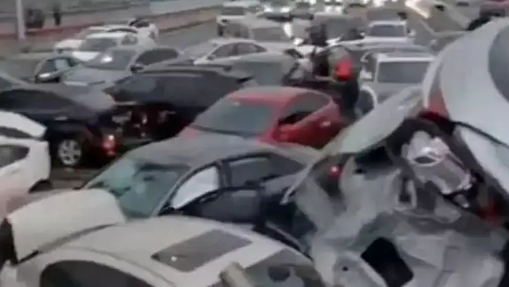 Çin’in Ciangsu eyaletinde buzlanan otoyolda 100’den fazla aracın karıştığı zincirleme trafik kazası meydana geldi.