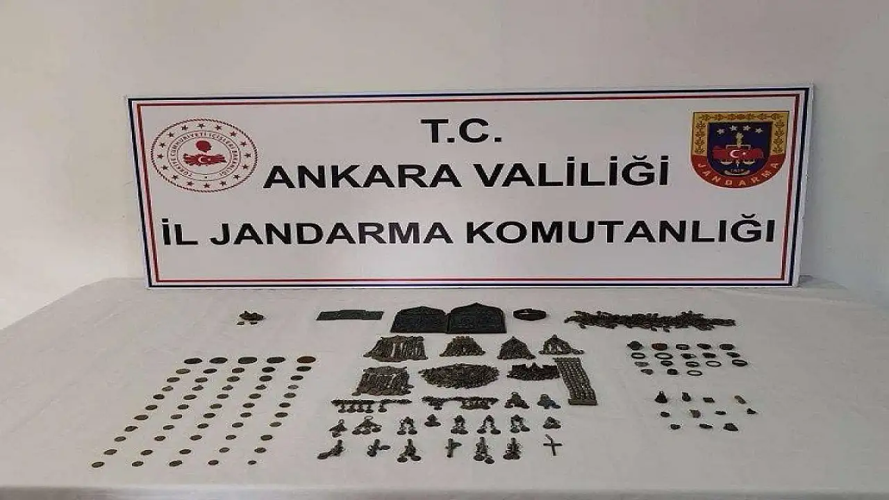 Ankara İl Jandarma Komutanlığı'nca, Ayaş'ta S.A. adlı kişinin ele geçirdiği tarihi eserleri piyasaya süreceği bilgisine ulaşıldı. Alınan istihbari bilgi üzerine ekiplerin gerçekleştirdiği operasyon sonucunda S.A.'nın aracında yapılan aramada, 52'si Roma ve Osmanlı dönemine ait olduğu değerlendirilen bronz ve gümüş sikke, 23'ü süs ve 26'sı metal obje olmak üzere 101 parça tarihi eser ele geçirildi. Operasyonda ele geçirilen tarihi eserlere el konulurken; yakalanan S.B. ile birlikte kaçakçılık suçuyla ilgili olarak Y.B. ve Z.P. adlı kişiler de gözaltına alındı.