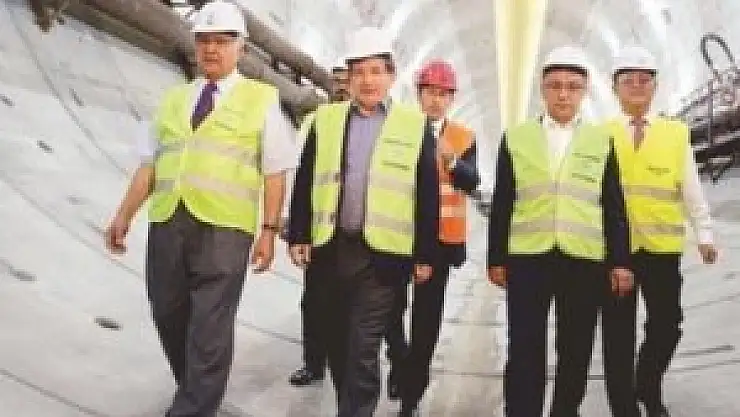 Kazlıçeşme ve Göztepe arasındaki 14,5 kilometrelik mesafenin bu yolla 15 dakikaya ineceğini belirten Davutoğlu, 'Küresel ölçekte bir proje. Türk mühendislik ve mimarlık tarihi açısından da örnek bir proje. Tünelde özellikle yürümeyi arzu ettim. Çünkü insanlık tarihinde herhalde kimseye nasip olmamış bir yürüyüş bu. Yaklaşık 920 metre. Her gün 8-10 metre ilerleyerek kat ediliyor tünel. Biz araçla gittik, yürüyerek geri döndük. Bundan sonra sık sık gelerek misafiriniz olacağım. 920 metre. 106 metreye (derinliğe) ulaştığınızda haber edin, o derin noktada işçilerimizle bir Türk kahvesi içeriz. Oraya da birlikte bir imza atarız' dedi.