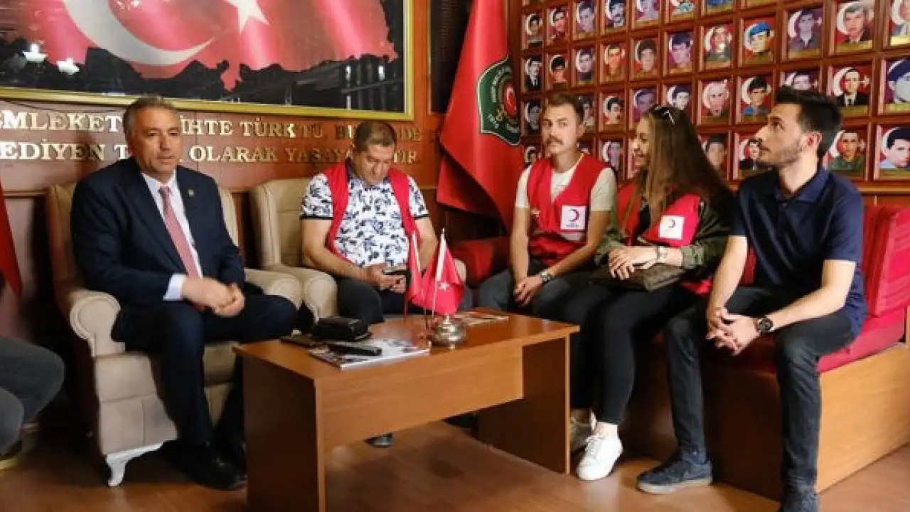 Meram Genç Kızılay gönüllüleri Türkiye Harp Malulü Gaziler Şehit Dul ve Yetimleri Derneğini ziyaret ederek burada şehit aileleri ve gaziler ile sohbet ettiler. Şube Başkanı Süleyman Ege yaptığı konuşmada, Türkiye’mizin kamu yararına çalışan bu iki güzide derneğin birlikteliklerinin yeni olmadığını, 1’nci Dünya Savaşında çeşitli cephelerde savaşan Osmanlı imparatorluğunun Harbiye Nazırı Enver Paşa’nın talimatıyla 1915 yılında İmparatorluğun Payitahtı İstanbul’da kurulduğunu, kuruluş amacının Çanakkale Cephesinde yaralanan gazilerin tedavilerinin yaptırılması, şehit ailelerine maddi yardım yapılması olduğu o zamanki ismi “Ma’lulin’i Guzata Muavenet Hey’at-ı Merkeziyesi Talimatname-i Dahiliyesi” tarihi tüzüğün Milli Savunma Bakanlığı arşivlerinde bulunduğunu, Cemiyetin İcra heyetinde Hilal-i Ahmer Cem-iyetinden (Kızılay) iki Azanın bulunduğunu dolayısı ile iki dernek arasında 107 yıldır bir işbirliğinin bulunduğunu belirtti.