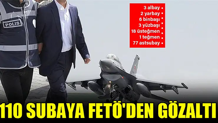 Hava Kuvvetlerindeki FETÖ yapılanması soruşturmasında, aralarında 3 albay, 2 yarbayın olduğu tamamı aktif görevde olan 110 şüpheli için gözaltı kararı verildi.