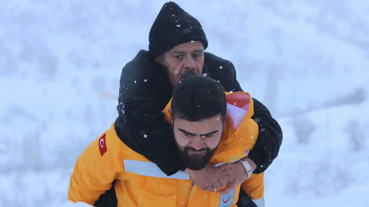 Konya'nın Hadim ilçesinde hasta ihbarına giden 112 Acil Servis ekipleri, ilçedeki yoğun kar nedeniyle 66 yaşındaki hastayı ambulansa kadar sırtında taşıdı.