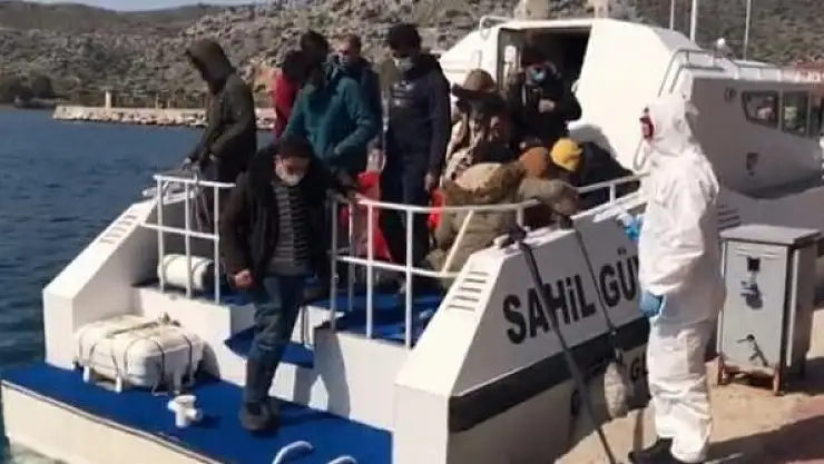 Muğla'nın Marmaris ilçesinde, Yunanistan sahil güvenlik unsurlarınca Türk kara sularına itilen saldaki 12 düzensiz göçmen kurtarıldı.