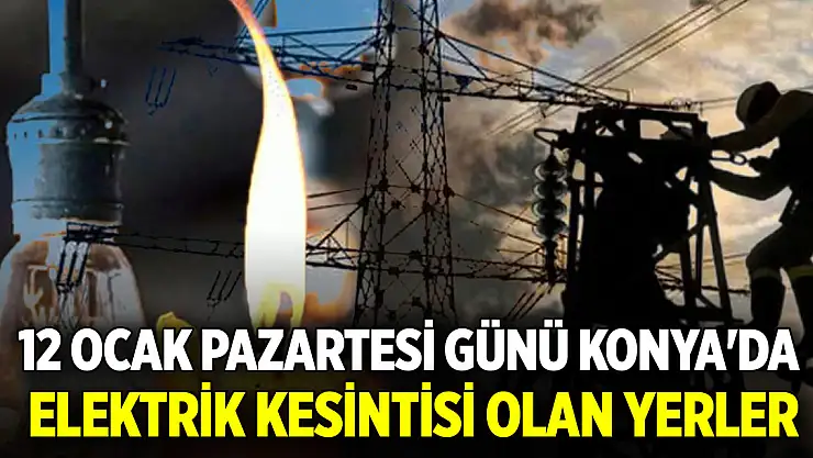 12 Ocak Pazartesi günü Konya'da elektrik kesintisi olan yerler