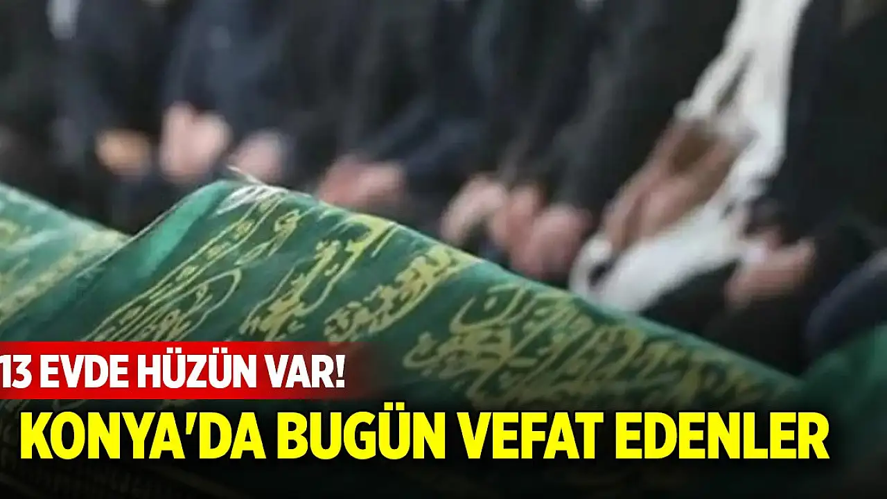 Konya'da bugün (7 Kasım 2025 Cuma) 13 kişinin vefat ettiği bilgisi aktarıldı. Dün ise 16 kişi vefat etmişti.