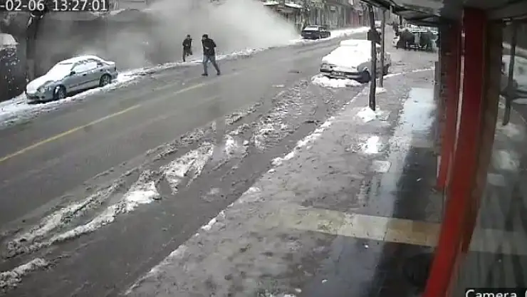Görüntülerde depremle birlikte yoldaki insanların sağa sola kaçışma anlarının ardından biranda ortalığı toz bulutun kapladığı apartmanın ise saniyeler içerisinde yerle bir olduğu görülüyor.