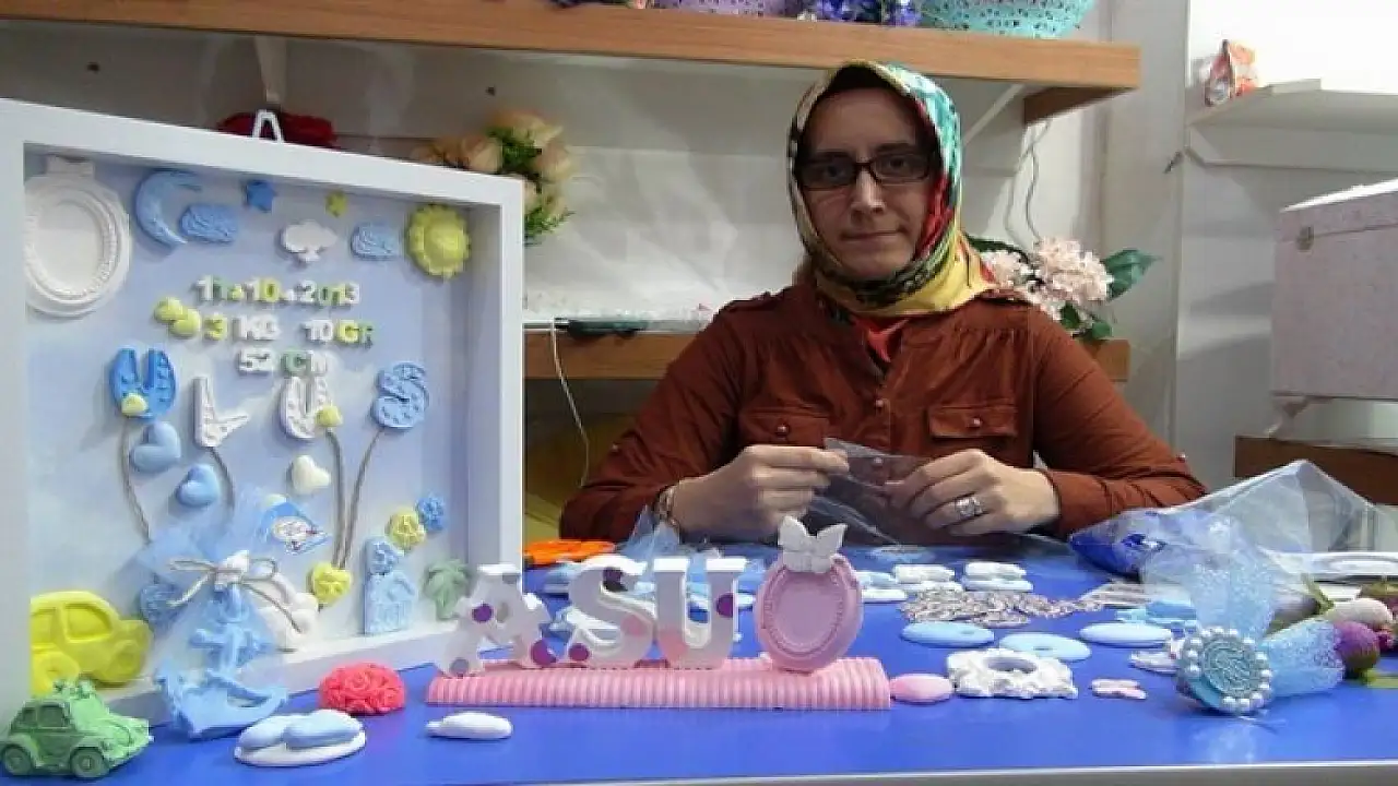 Sabun bazından yaptığı el işi süs ürünlerinin çevresinde beğenilmesi sonucu siparişler almaya başladığını aktaran Dilek Güler, "Yaptıklarım, çevremdekiler tarafından ve sosyal medyada beğenildi. Siparişler alıp, yurt dışına bile ürünler yollamaya başladım. Sonra kokulu taşı öğrendim, kokulu taştan kişiye özel isimlikler, panolar yapmaya başladım. Çok çeşitli ürünler yaptım" dedi.