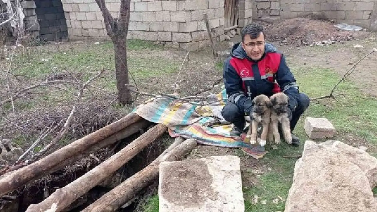 Van'ın İpekyolu ilçesinde 13 metre derinlikteki çukura düşen yavru köpekler, itfaiye ekipleri tarafından kuyuya inilerek kurtarıldı.
