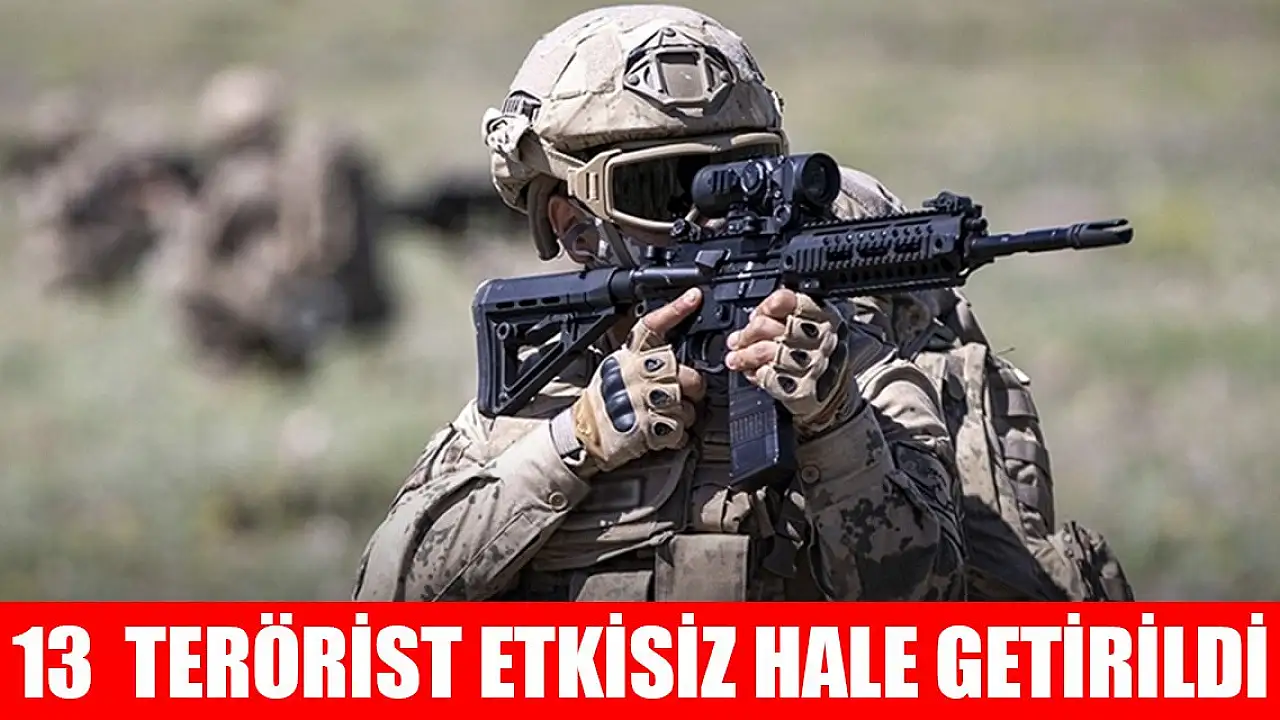 Milli Savunma Bakanlığı, Fırat Kalkanı ve Barış Pınarı bölgelerinde taciz ateşi açan 13 PKK'lı teröristin etkisiz hale getirildiğini duyurdu.