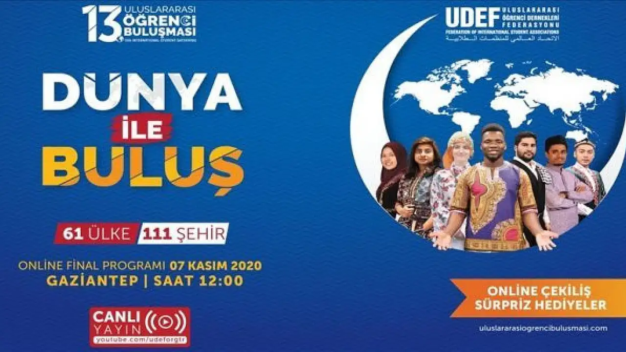 Türkiye'de uluslararası öğrenciler üzerine çalışan en büyük sivil toplum kuruluşu olan Uluslararası Öğrenci Dernekleri Federasyonunun (UDEF) gelenekselleştirdiği "öğrenci buluşması"nın finali Gaziantep'te yapılacak.