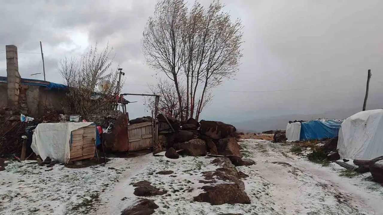 1300 rakımlı yaylaya mevsimin ilk karı düştü