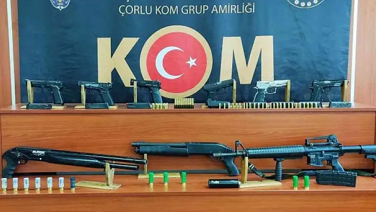 Tekirdağ İl Emniyet Müdürlüğü KOM Şube Müdürlüğü ekipleri, Çorlu ilçesinde silah bulundurduğu yönünde bilgiler elde edilen şahıslara yönelik 14 adrese operasyon düzenledi. Operasyonda yapılan aramalarda 5 adet ruhsatsız tabanca, 1 adet kurusıkı tabanca, 4 adet ruhsatsız tüfek, 67 adet fişek ele geçirildi. Olayla ilgili gözaltın alınan 5 kişi hakkında işlem başlatıldı.