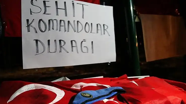 Türk bayraklarıyla donattıkları araçlarıyla, kornalar çalarak hain saldırının yaşandığı yere gelen vatandaşlar, şehit askerler için saygı duruşunda bulundu. İstiklal Marşı'nı okuyan grup, saldırıda şehit olanların isimlerini tek tek sayarak, "burada" diye bağırdı.
