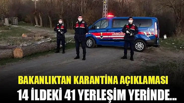 İçişleri Bakanlığından yapılan açıklamada, '14 ildeki 41 yerleşim yerinde karantina kararı kaldırılmıştır.' ifadelerine yer verildi.