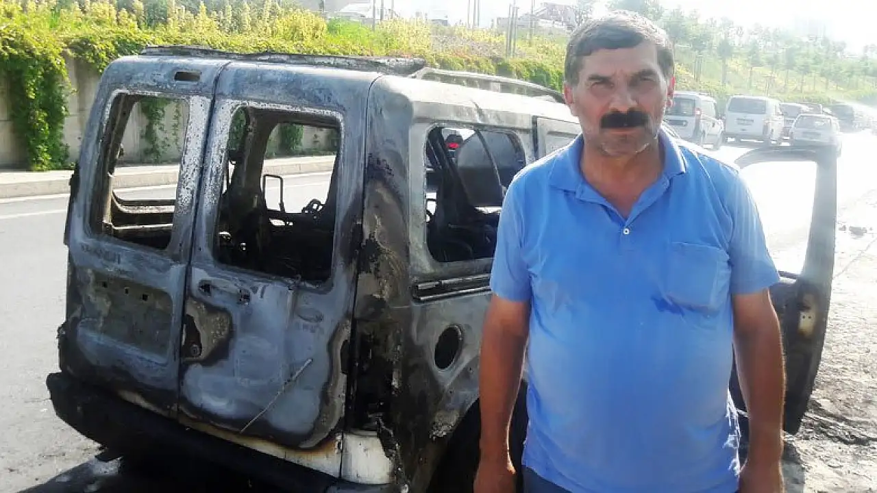 Aracının dakikalar önce satın aldığını söyleyen Bahattin Çevik, “Bir baktım kaloriferin oradan tutuştu. Birden bire yandı. Arabayı 18 bin liraya almıştım. Ne hissedeyim nasibimiz böyleymiş. Sigortası vardı ama kasko yapamamıştım. Yeter ki cana gelmesin” dedi.