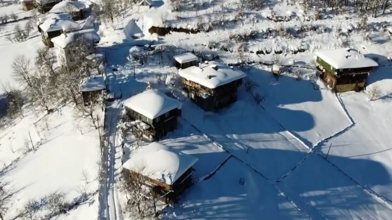 1,5 metrelik kar altındaki köyler havadan görüntülendi