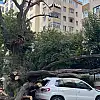 150 yıllık meşe ağacı park halindeki 6 aracın üstüne devrildi