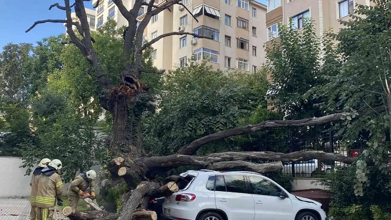 Kadıköy'de 150 yıllık olduğu öğrenilen ağacın dalları park halindeki 6 aracın üstüne ağaç devrildi. Olayda yaralanan olmazken araçlarda maddi hasar oluştu.