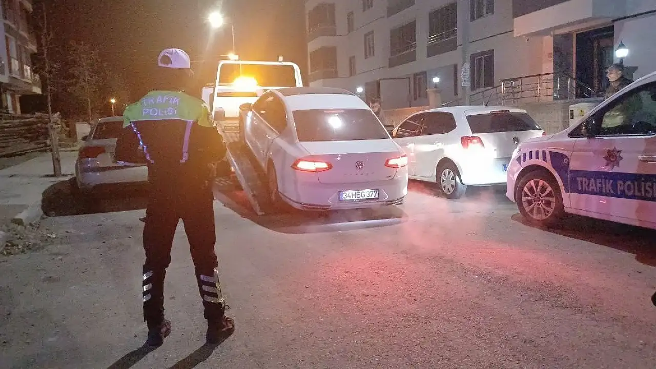 Araç polis ekiplerince çekici ile otoparka çekildi.