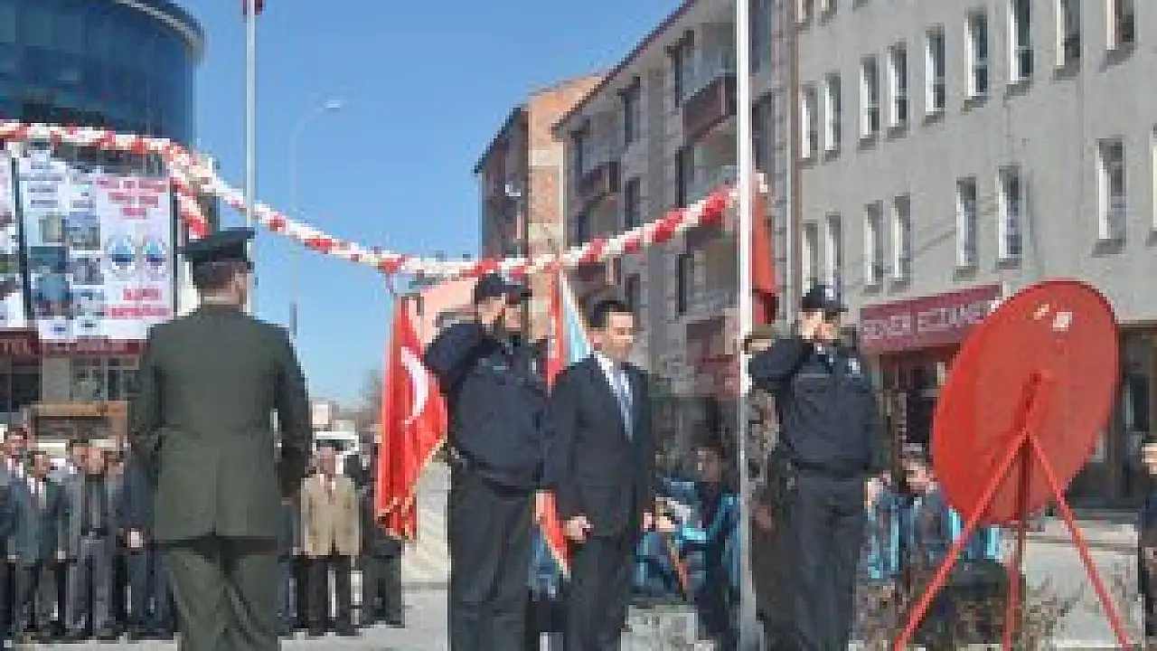 Anıt Meydanı'nda gerçekleştirilen tören, anıta çelenk sunulmasının ardından saygı duruşu ve İstiklal Marşı'nın okunmasıyla başladı.