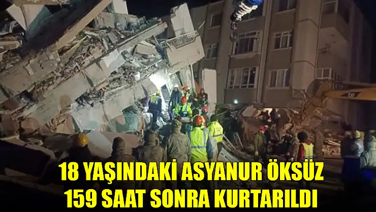 Ekipler yaklaşık 6,5 saat süren uğraşlar sonucu bir binanın enkazından 159 saat sonra kurtarmayı başardığı 18 yaşındaki Asyanur Öksüz'ü, sağlık ekiplerine teslim etti.