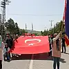 Hükmet Konağı önünde başlayan gençlik yürüyüşünde öğrenciler marşlar eşliğinde,"Ne Mutlu Türküm Diyene, Türk Öğün, Çalış, Güven" diye bağırarak yürüdü.