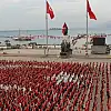 skenderun'da Atatürk Anıt alanında toplanan bin 923 gönüllü tek yürek olarak ay yıldızlı, kırmızı beyaz dev bir bayrağı oluşturdu.
