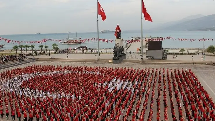 Sarı Zeybekler Derneği tarafından Cumhuriyet Bayramı dolayısıyla İskenderun Anıt alanında toplanan farklı yaş gruplardan oluşan bin 923 kişi dev Türk bayrağı oluşturarak rekor kırdı.