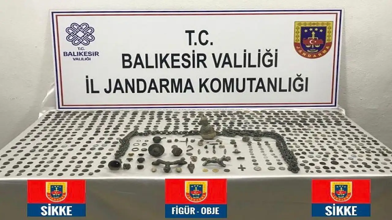 Balıkesir İl Jandarma Komutanlığı ekipleri, kültür ve tabiat varlıkları kaçakçılığına yönelik istihbarat çalışmasında bir kişinin elinde bulunan tarihi eserleri satmak için müşteri aradığı bilgisine ulaştı. Fiziki ve teknik takip başlatan ekipler, şüphelinin tarihi eserleri evinde sakladığını tespit etti. Bunun üzerine harekete geçen jandarma ekipleri şüphelinin evine operasyon düzenledi. Operasyonda, Roma dönemine ait olduğu belirlenen 2 bin 130 sikke ve yine aynı döneme ait 52 obje ele geçirildi. Tarihi eserleri satmaya çalışan şüpheli gözaltına alınarak jandarma karakoluna götürüldü. Olayla ilgili soruşturma sürdürülüyor.