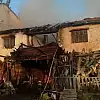 Yangının ardından 2 katlı ev kullanılamaz hale gelirken, olay sonrası bina adeta enkaza döndü.