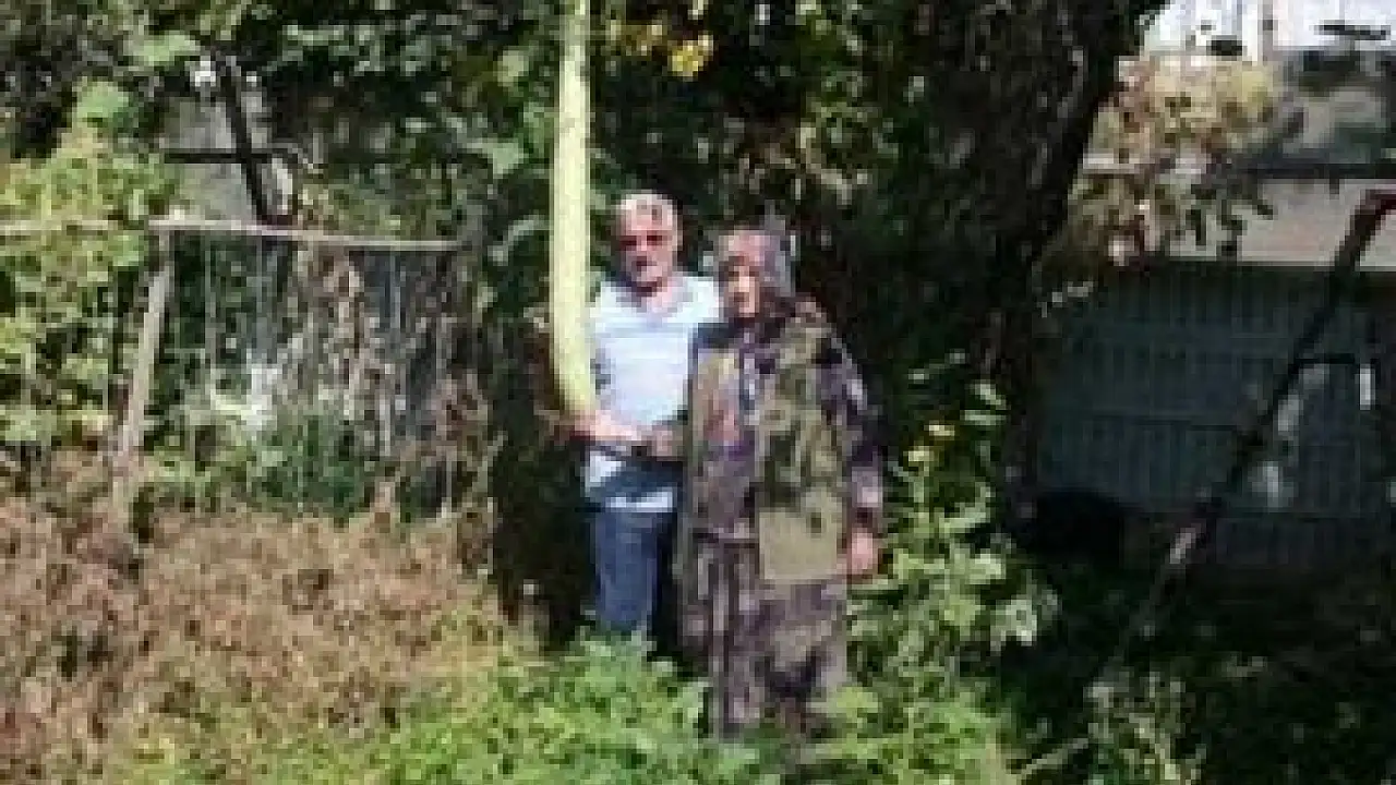 Konya'da yaşayan Mustafa Maşalı, bahçesinde yetiştirdiği 2 metre 20 santimetre uzunluğundaki kabağın Türkiye'de bir rekor olduğunu iddia etti.