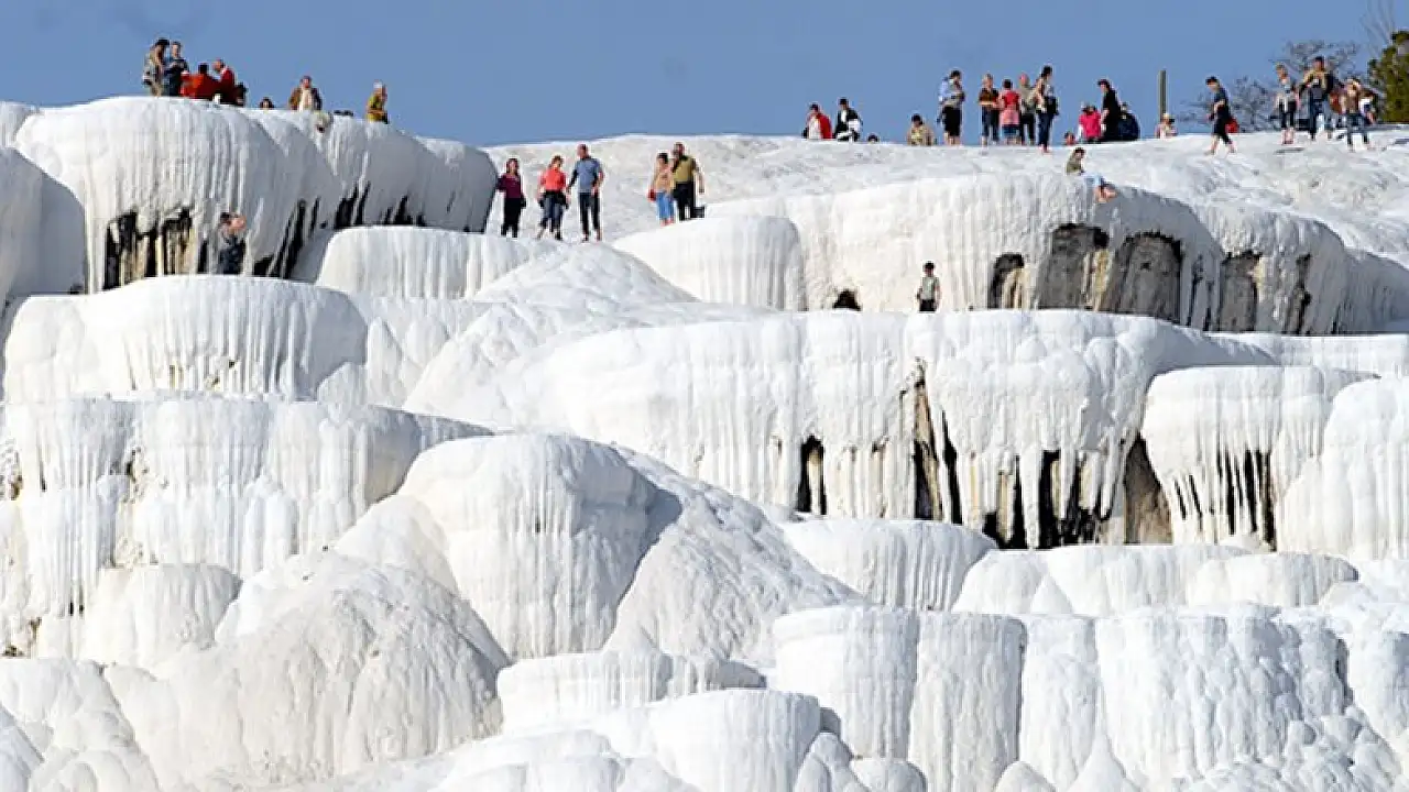 UNESCO Dünya Mirası Listesi'ndeki Pamukkale, her mevsim yerli ve yabancı turistlerin akınına uğruyor. Termal sularıyla 2 bin 500 yıldır insanlara şifa dağıtan Pamukkale'nin beyaz travertenleri ve Hierapolis Antik Kenti'ndeki tarihi yapılar, bölgeye dünyanın her yerinden ziyaretçi çekiyor.