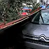 MALTEPE'de şiddetli fırtına nedeniyle 2 otomobilin üzerine inşaat panosu devrildi.