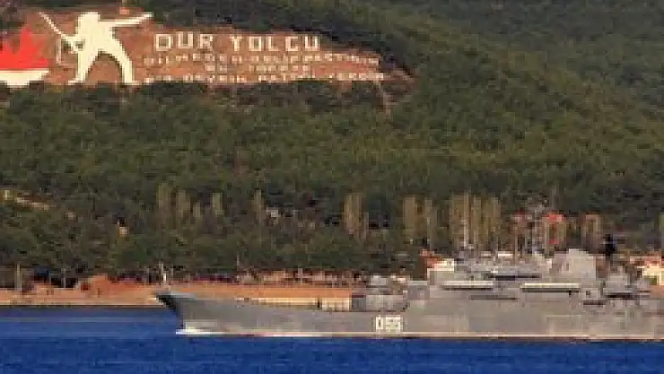 Sahil güvenlik botlarının eşlik ettiği Rus Donanması'na ait gemiler, kordon boyunda bulunan vatandaşlar tarafından ilgiyle izlendi.