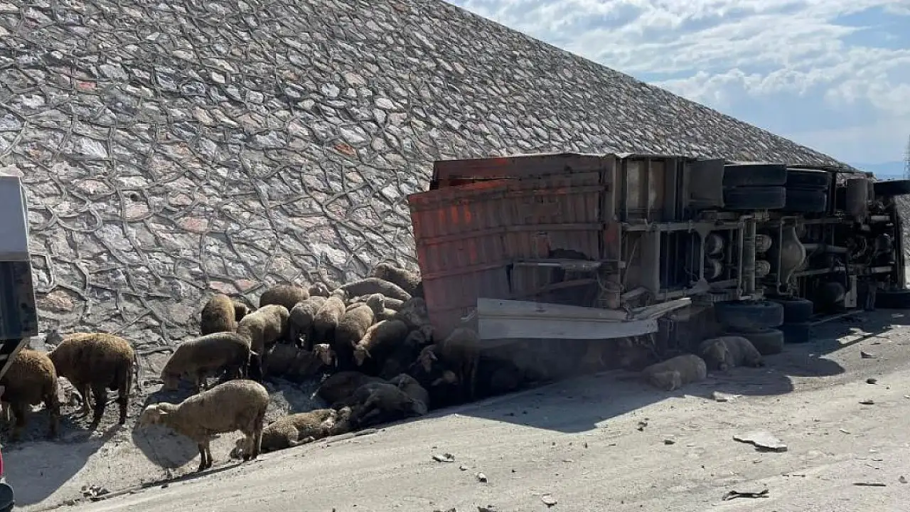 Balıkesir'de İzmir-İstanbul otoyolunda 2 tırın karıştığı kazada bir kişi hayatını kaybederken 2 kişi ise yaralandı. Kamyonun kasasında bulunan koyunlardan 20 civarı ise telef oldu.