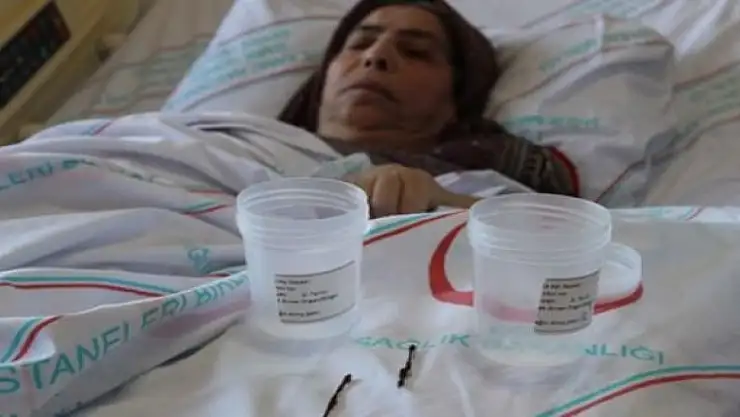 Bağırsak fistülü şikayetiyle hastaneye başvuran 68 yaşındaki kadının batın bölgesinden 2 adet 5'er santimetrelik iğne çıkaran doktorlar şaşkınlığını gizleyemedi.