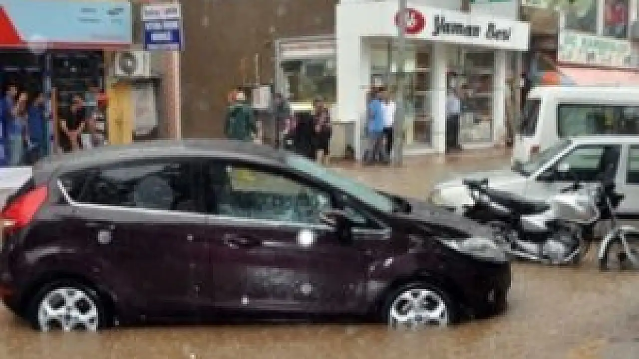 İlçe merkezinde birçok işyerini su basarken, esnaflar kendi imkanları ile işyerlerini basan suyu tahliye etmek için canla başla çalıştılar.