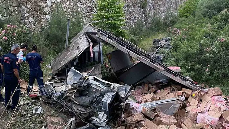 20 metrelik uçuruma düşen kamyonun sürücüsü öldü