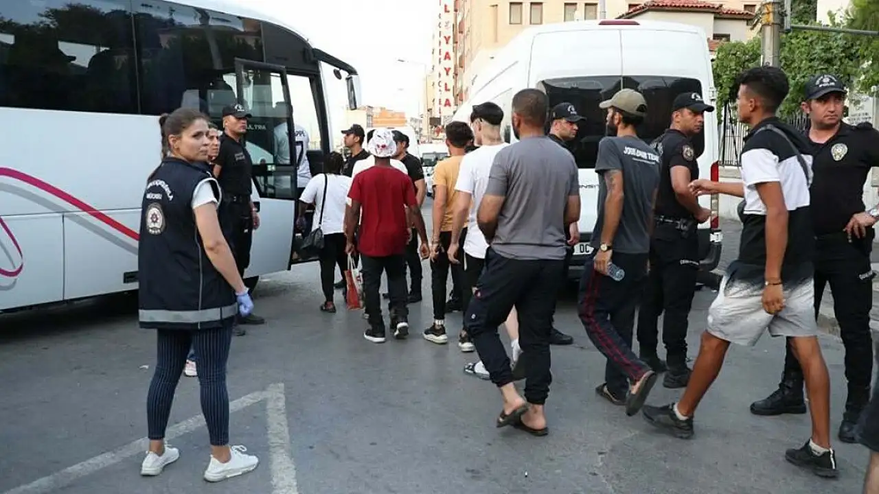 İZMİR'in Konak ilçesinde polis ekiplerince düzenlenen operasyonda 200 kaçak göçmen yakalandı.