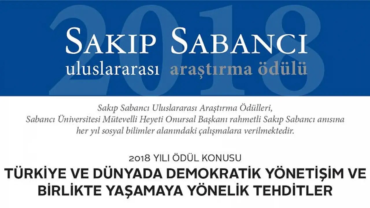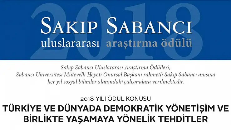 Sabancı Üniversitesi tarafından her yıl düzenlenen Sakıp Sabancı Uluslararası Araştırma Ödülü'nün 2017 yılı konusu 'Türkiye ve Dünyada Demokratik Yönelitim ve Birlikte Yaşamaya Yönelik Tehditler' olarak belirlendi. Ödüle son başvuru tarihi 15 Ocak 2018.