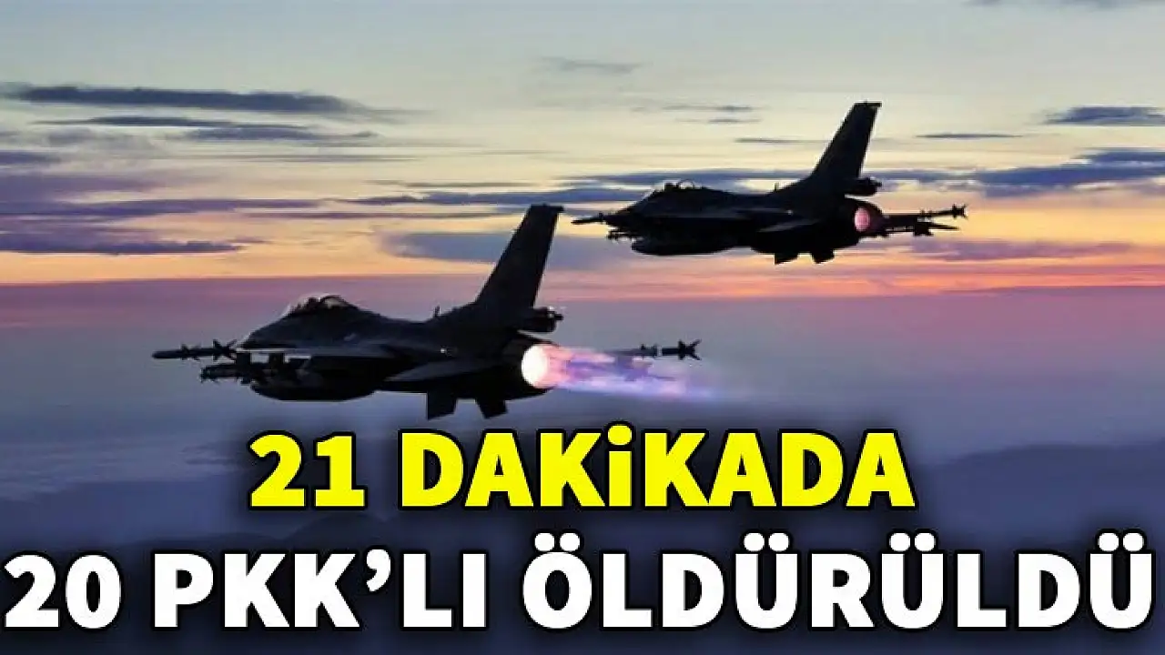 Saldırı hazırlığında olduğu belirlenen teröristlere yönelik hava harekatı ile yürütülen operasyonda, 20 bölücü terör örgütü mensubu etkisiz hale getirildi. Hava harekatında, bölücü terör örgütü mensuplarınca kullanılan mağara ve üç silah mevzisi imha edildi. Dün Tendürek bölgesinde yürütülen operasyonda 9 bölücü terör örgütü mensubu etkisiz hale getirilmişti.