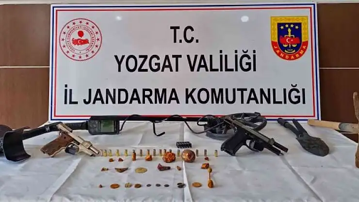 Yozgat İl Jandarma ekipleri Sarıkaya ilçesinde, tarihi eser bulunduğu bilgisi üzerine çalışma başlattı. Olayla ilgili ekipler kimlik bilgileri tespit edilen H.K.'nın işyerine ve aracına operasyon düzenledi. Yapılan aramada 6 adet sikke, 1 adet yüzük, 9 adet obje ve 7 adette maden kurşun obje olmak üzere toplam 23 adet tarihi eser niteliği taşıdığı değerlendirilen malzeme ele geçirildi.